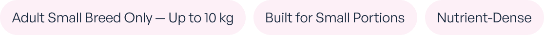 Complete, nutrient-dense daily food for small dogs — designed to deliver full nutrition in fewer bites — within the portions they actually eat.