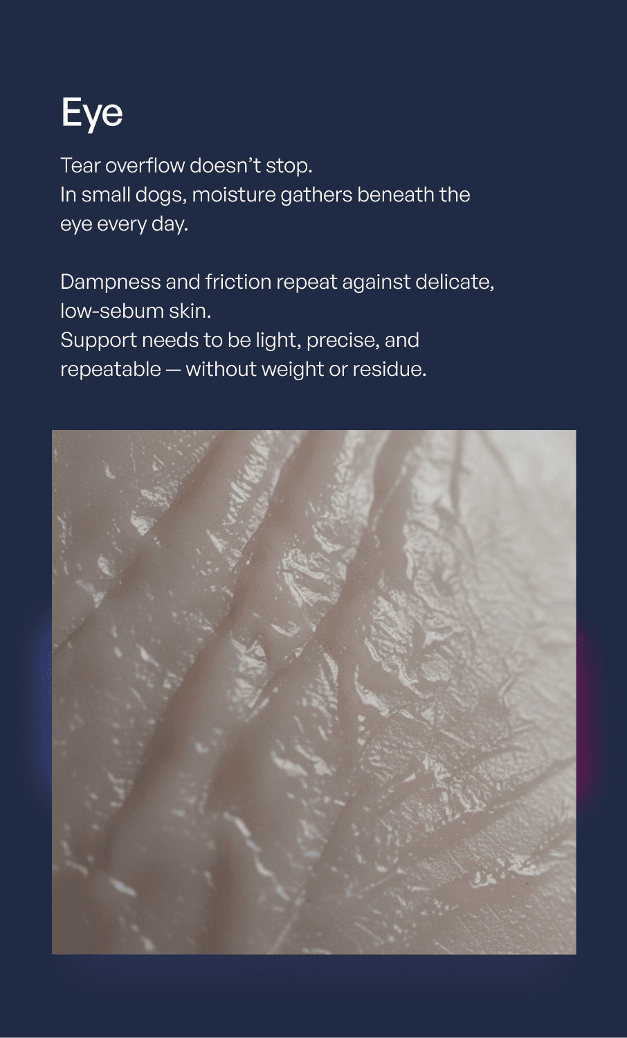 Eye, nose, and paw needs in small dogs come from normal biology — movement, moisture, contact — repeating day after day.