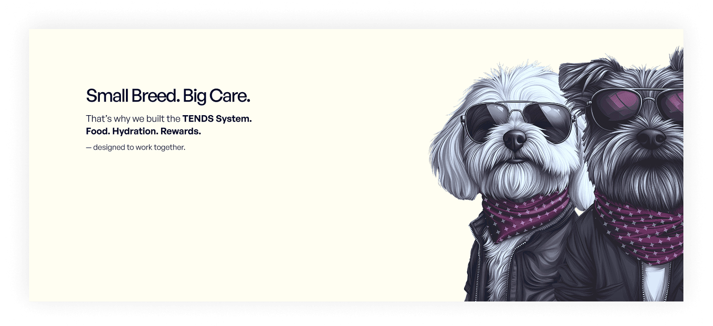 TENDS replaces that patchwork with one system — designed around small-dog biology.